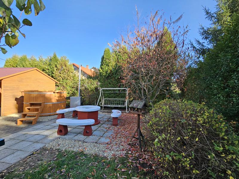 A frissen felújított vendégház 2 hálószobával, tágas nappalival, jól felszerelt konyhával és étkezővel várja vendégeit. A nagy kert, a fedett terasz és a sós vizű dézsafürdő tökéletes helyszínt biztosít a kikapcsolódáshoz.
